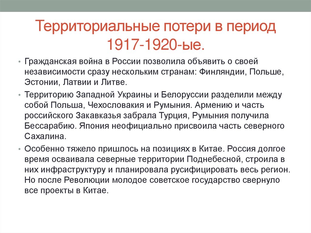 3. Территориальные потери в период 1917-1920-ые.