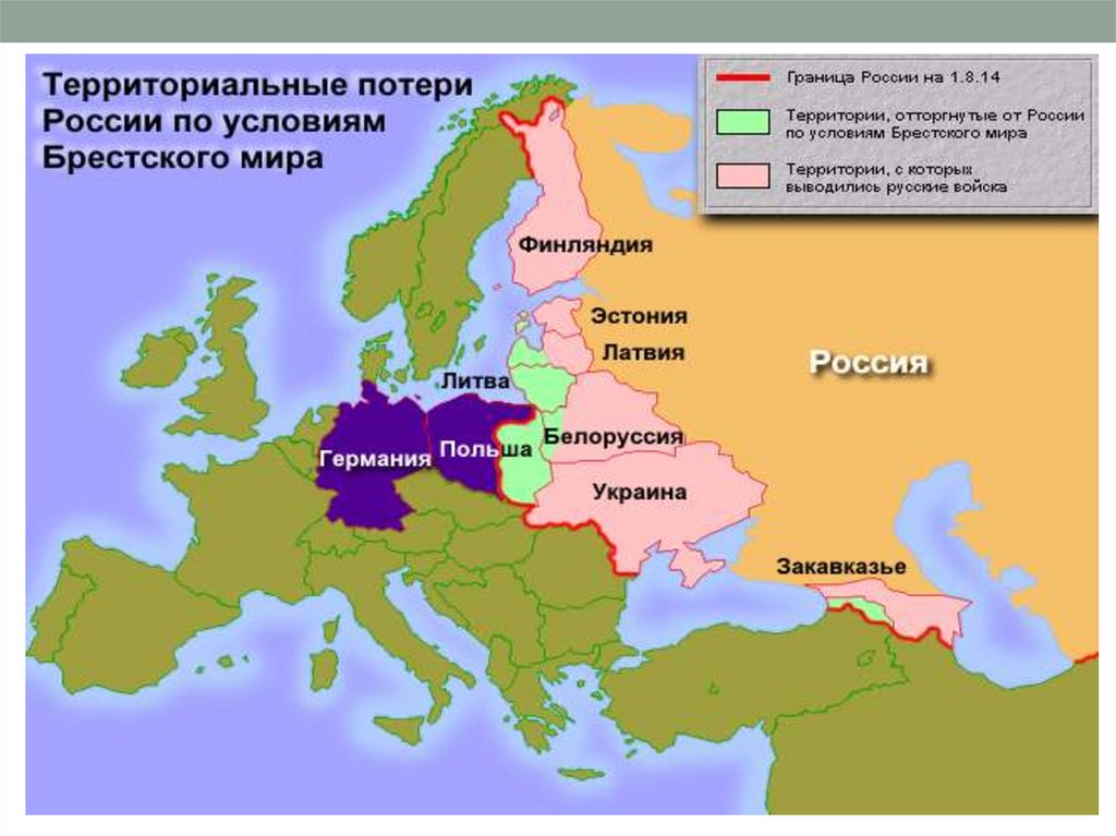 • Гражданская война в России позволила объявить о своейнезависимости сразу нескольким странам: Финляндии, Польше,