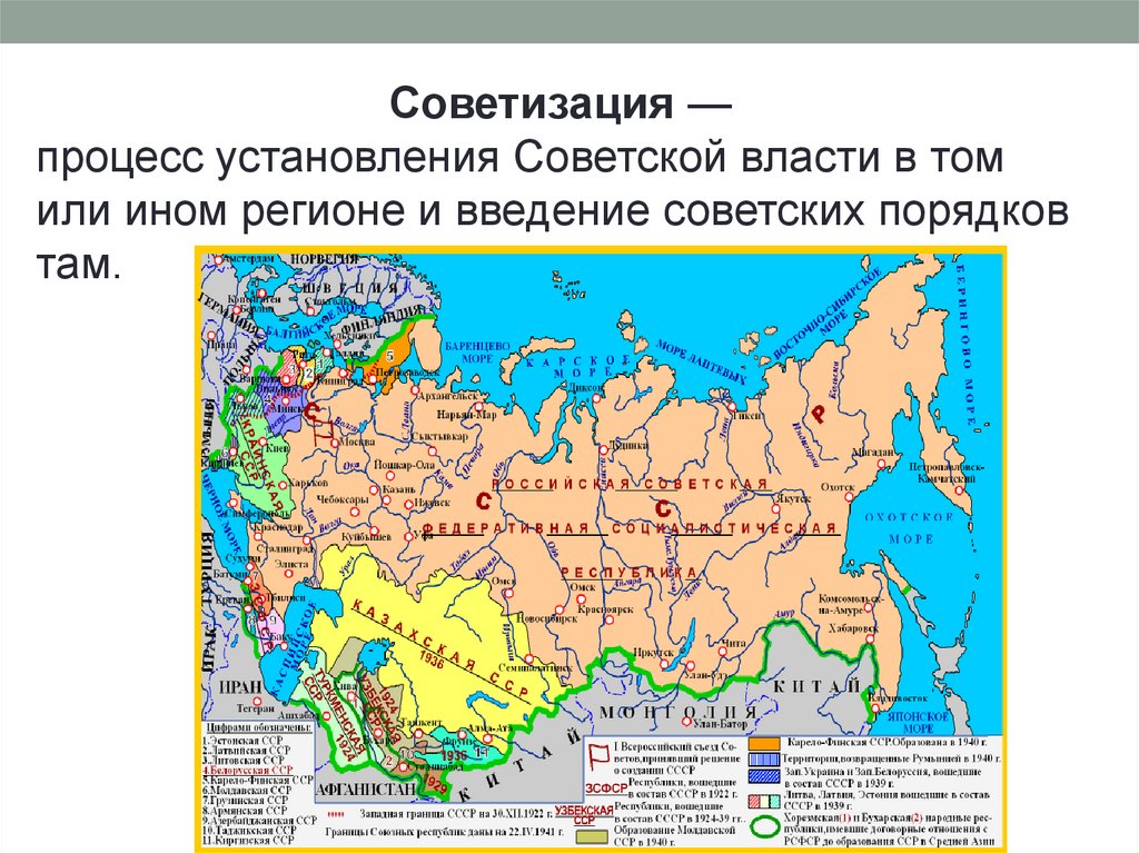 Советизация —процесс установления Советской власти в том