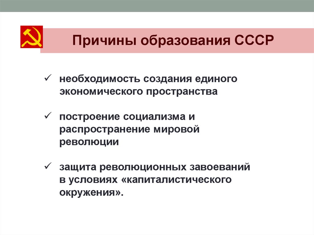 Причины образования СССРнеобходимость создания единого