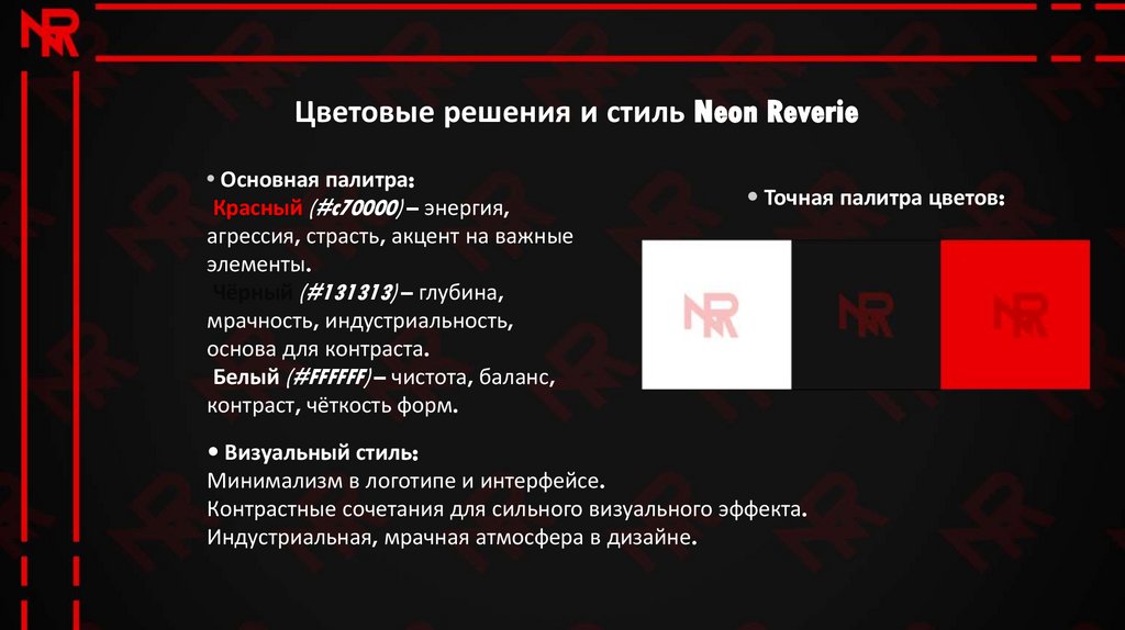Цветовые решения и стиль Neon Reverie• Основная палитра: