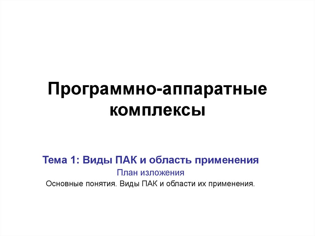 Тема 1: Виды ПАК и область примененияПлан изложения