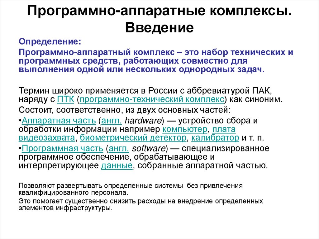 Определение:Программно-аппаратный комплекс – это набор технических и