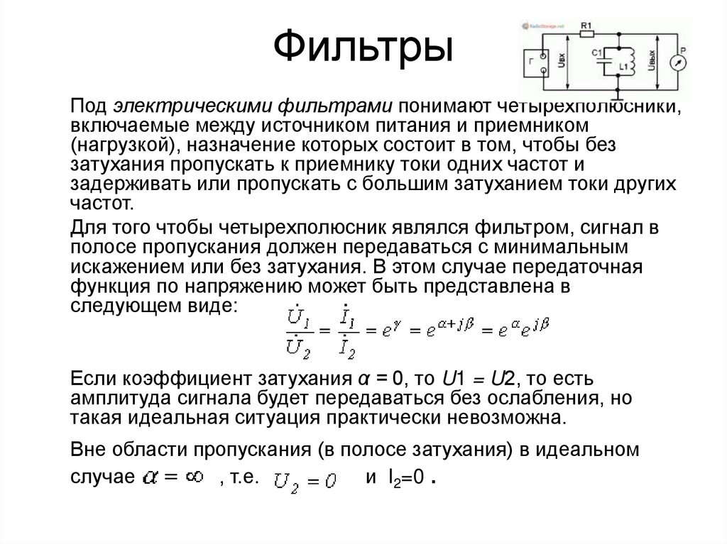 Для того чтобы четырехполюсник являлся фильтром, сигнал в