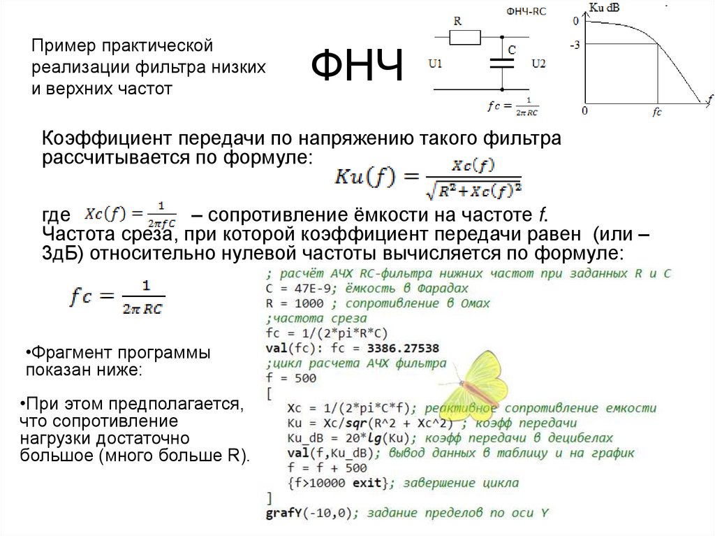 3дБ) относительно нулевой частоты вычисляется по формуле: