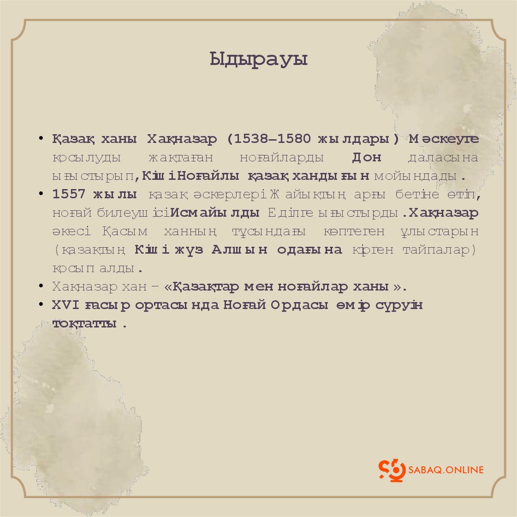 НОҒАЙ ОРДАСЫХІV-ХVІ ғасырлар