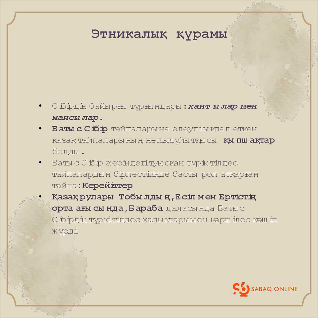 Этникалық құрамыС ібірдің байы рғы тұрғы ндары :хант ы лар мен
