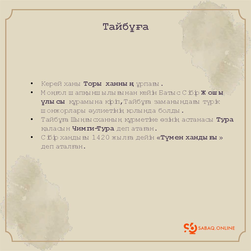 ТайбұғаКерей ханы Торы ханны ң ұрпағы .