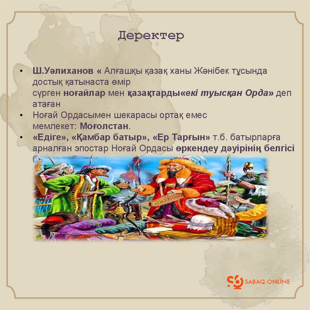 ДеректерШ.Уәлиханов « Алғашқы қазақ ханы Жәнібек тұсында