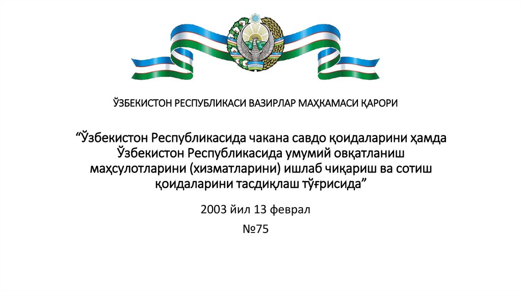 ВАЗИРЛАР МАҲКАМАСИНИНГ 75-СОНЛИ ҚАРОРИ БИЛАН:• ЎЗБЕКИСТОН РЕСПУБЛИКАСИДА ЧАКАНА
