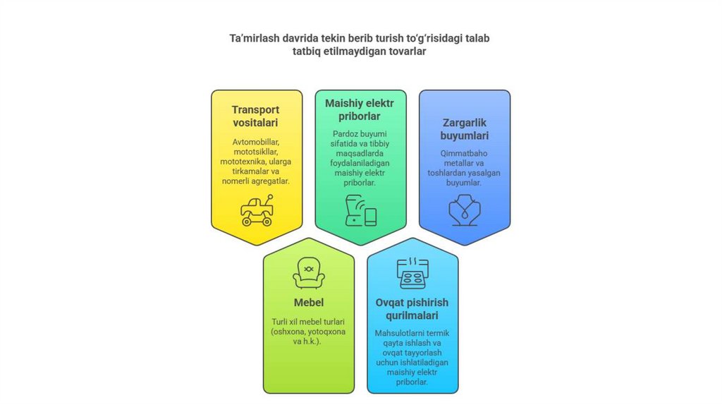 • Харидорнинг таъмирлаш даврида унга текин бериб туриш ёки