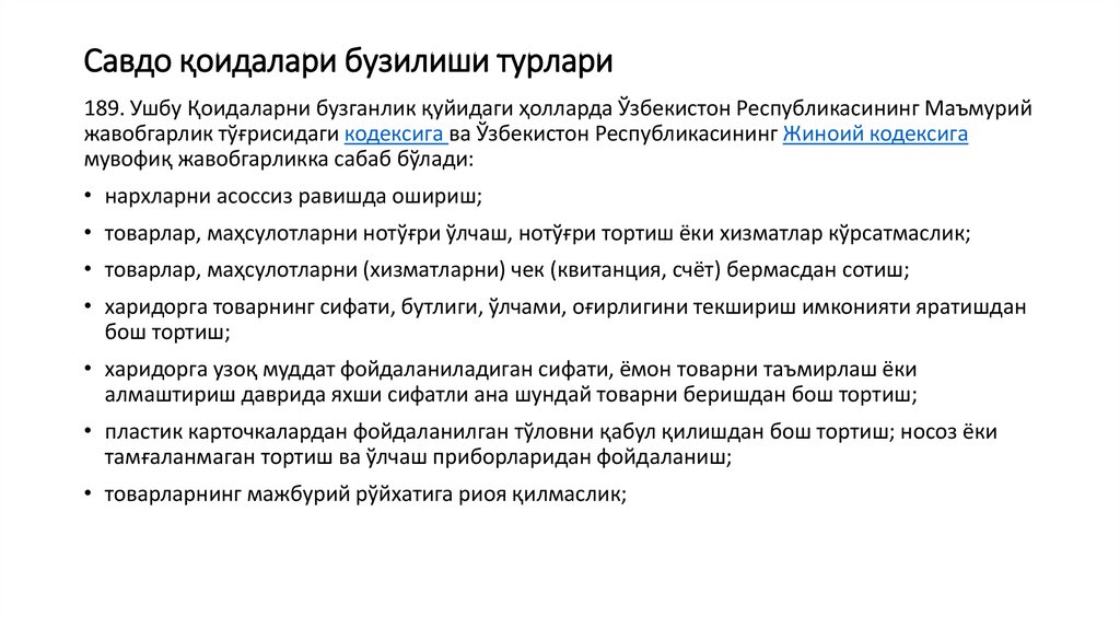Савдо қоидалари бузилиши турлари
