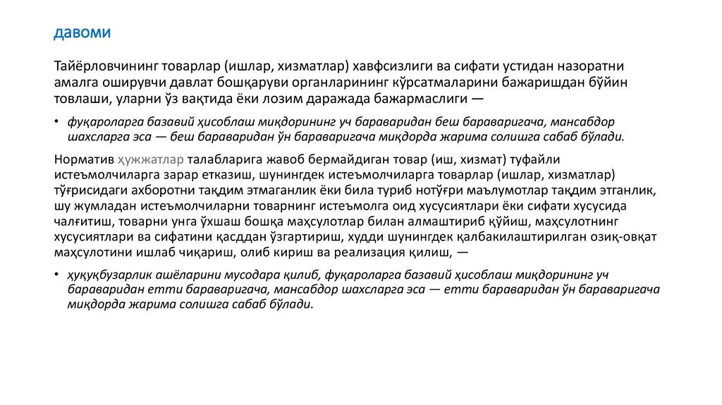 давомиТайёрловчининг товарлар (ишлар, хизматлар) хавфсизлиги ва сифати устидан назоратни