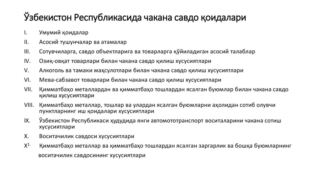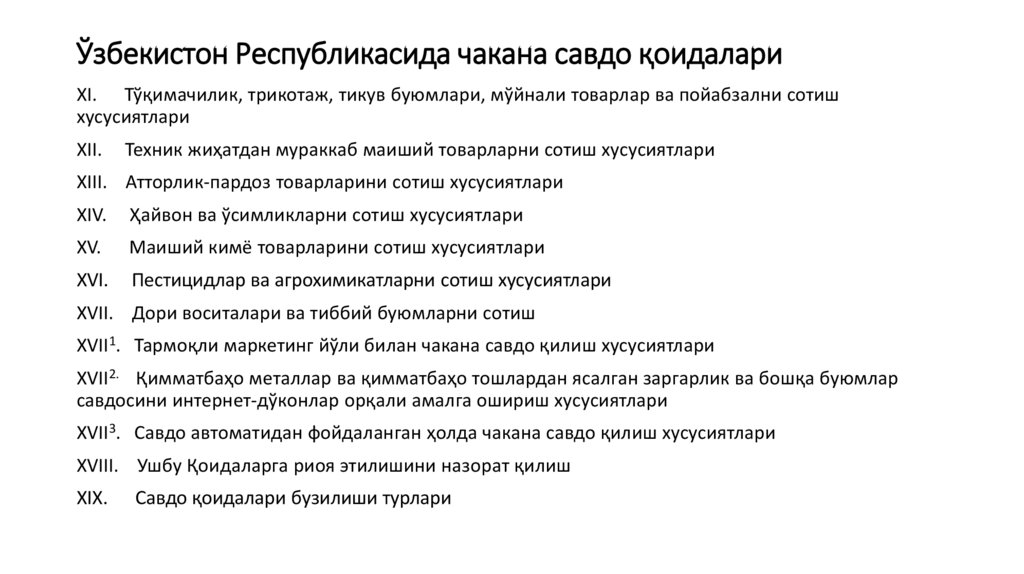 Ўзбекистон Республикасида чакана савдо қоидалариI.