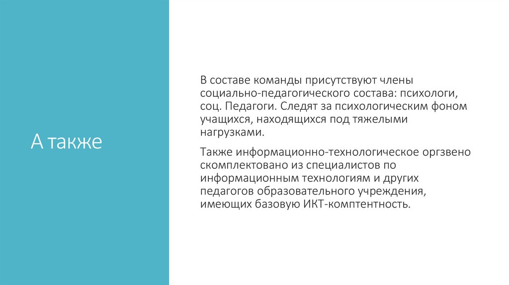 А такжеВ составе команды присутствуют члены