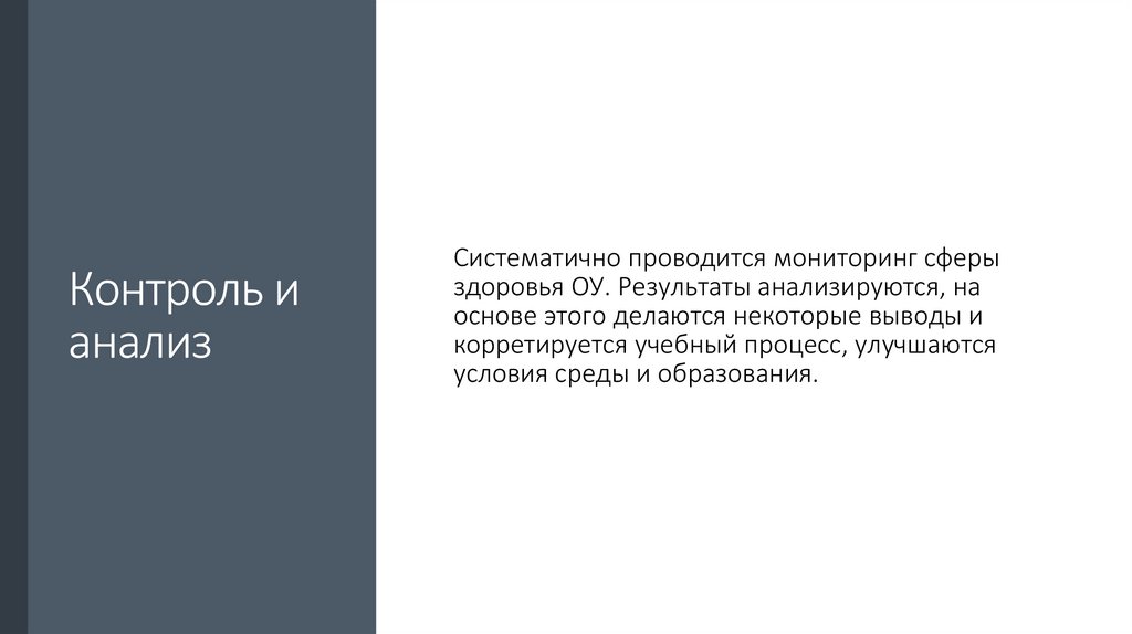 здоровья ОУ. Результаты анализируются, на