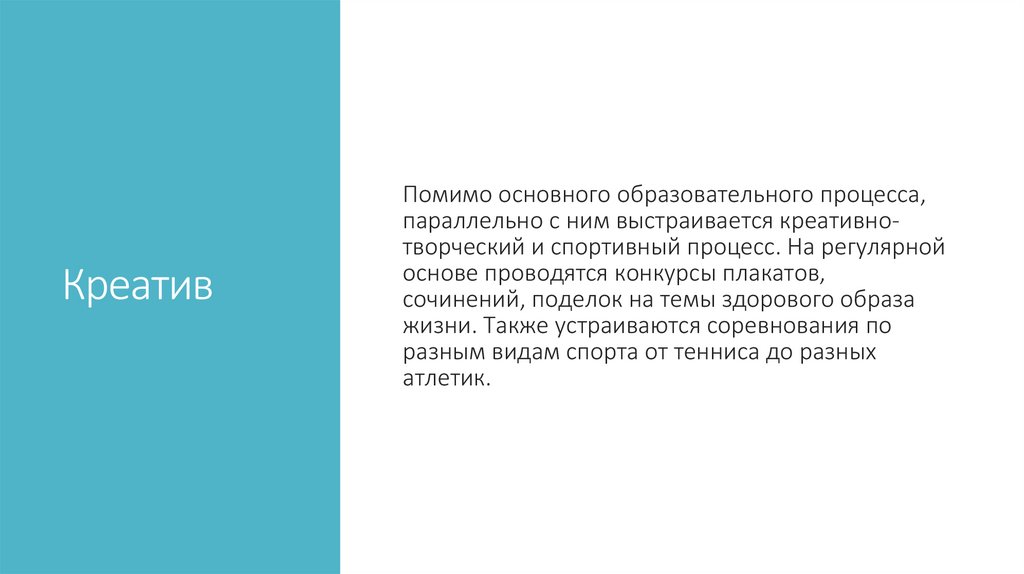 КреативПомимо основного образовательного процесса,