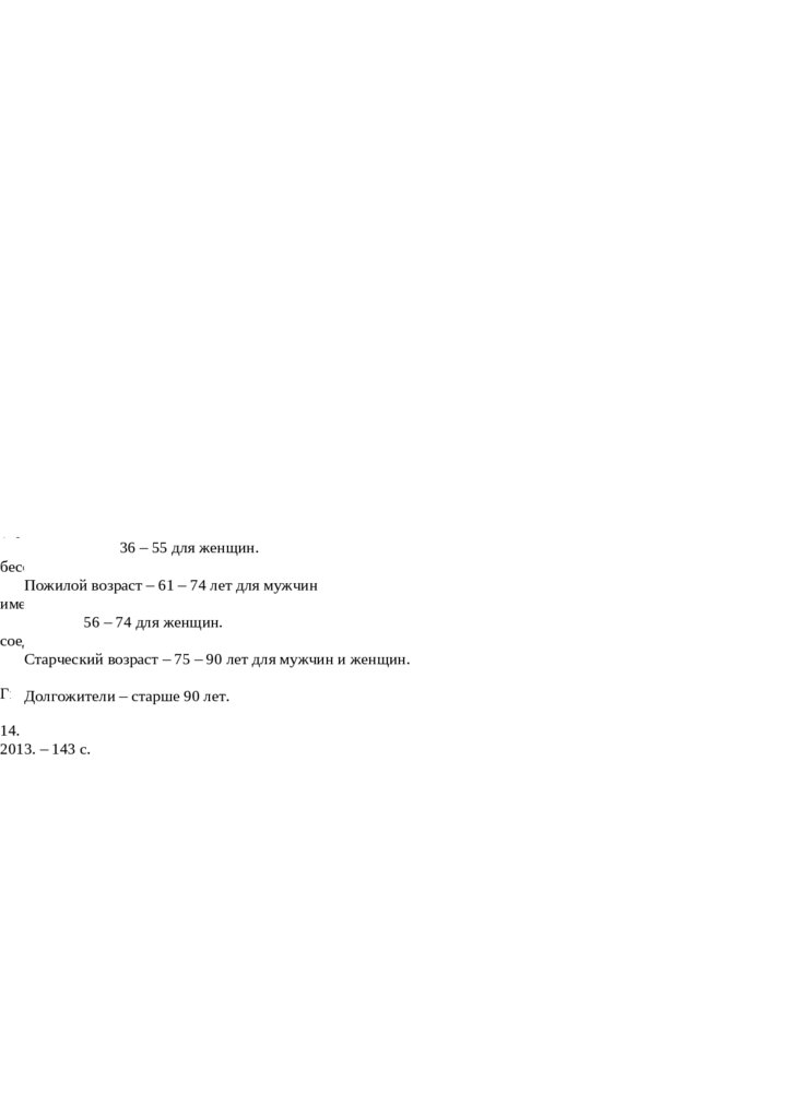 Старческий возраст – 75 – 90 лет для мужчин и женщин.