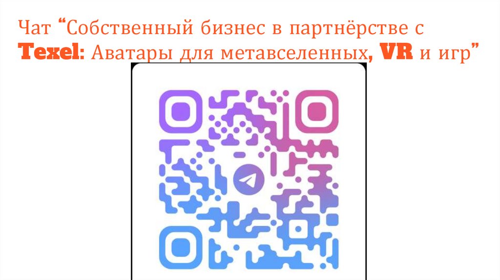 Чат “Собственный бизнес в партнёрстве сTexel: Аватары для метавселенных, VR и игр”