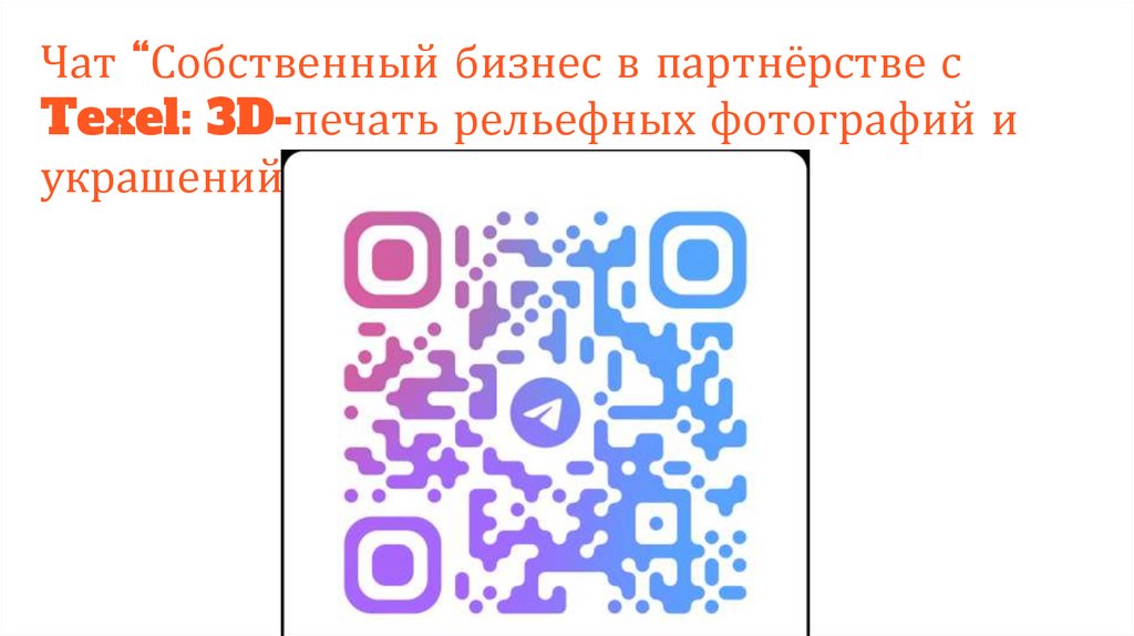 Чат “Собственный бизнес в партнёрстве сTexel: 3D-печать рельефных фотографий и