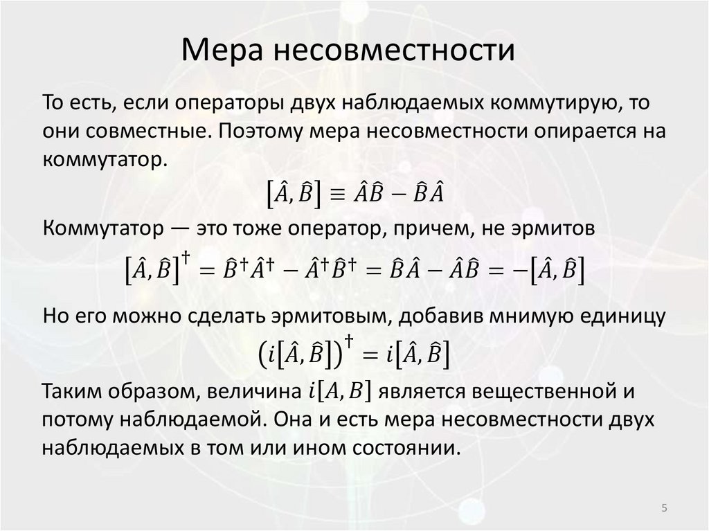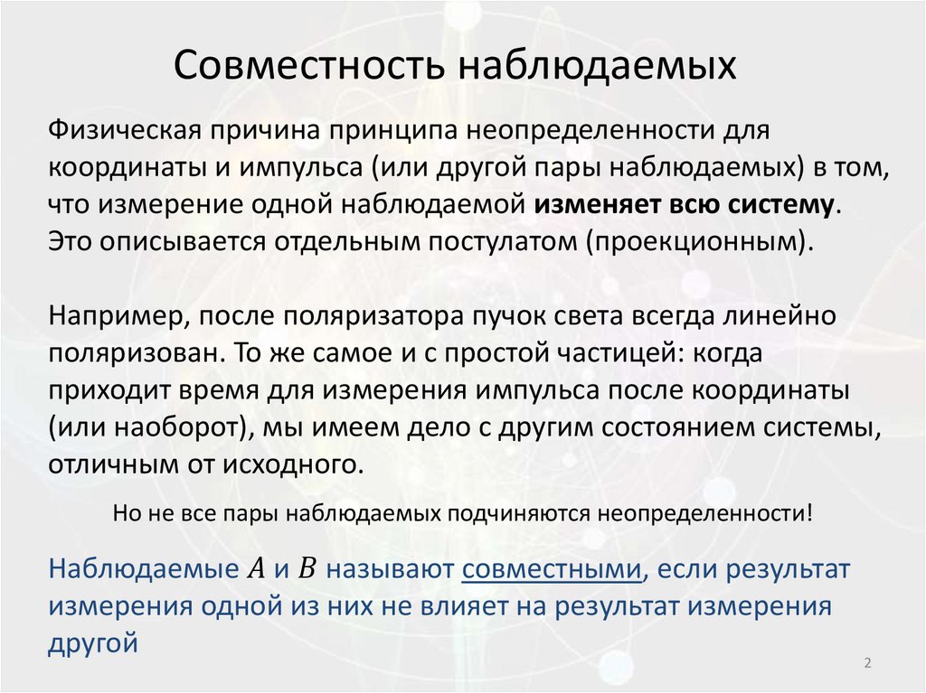 Совместность наблюдаемыхФизическая причина принципа неопределенности для