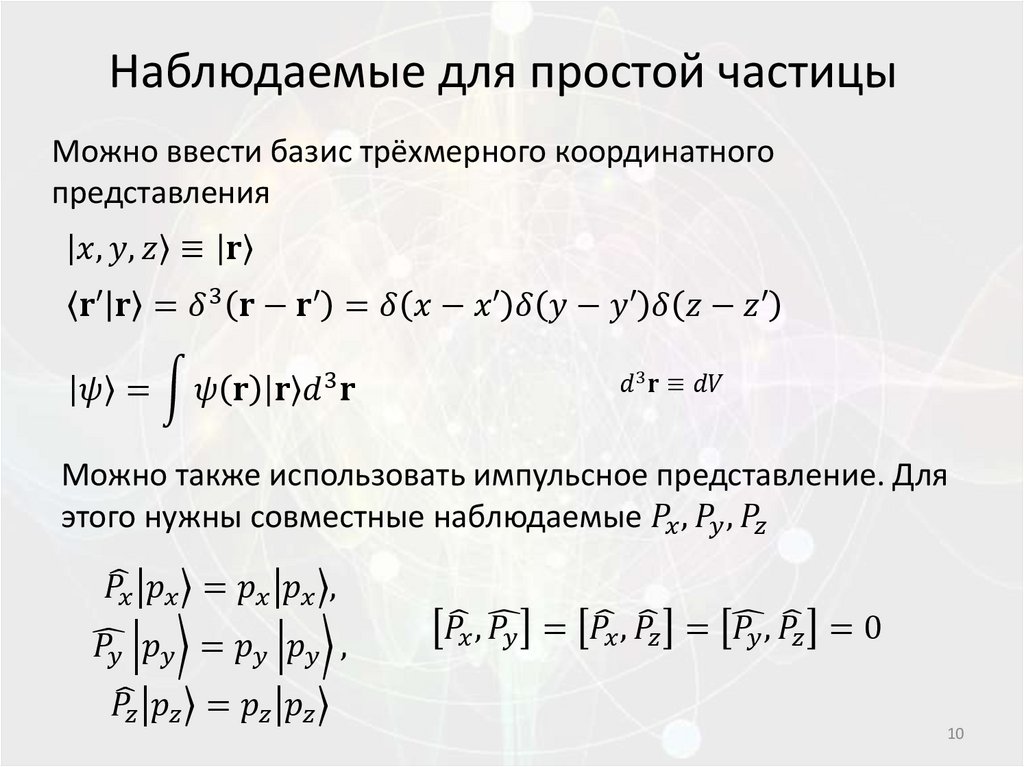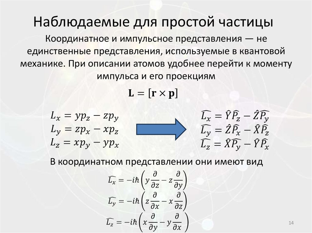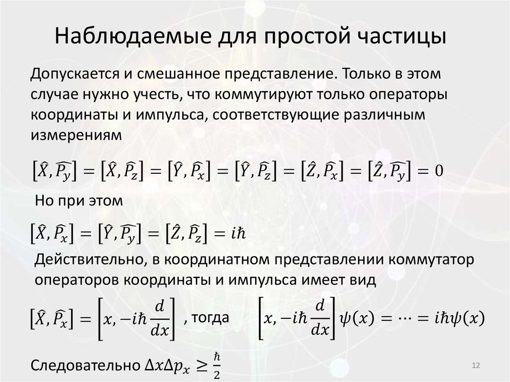 координаты и импульса (или другой пары наблюдаемых) в том,