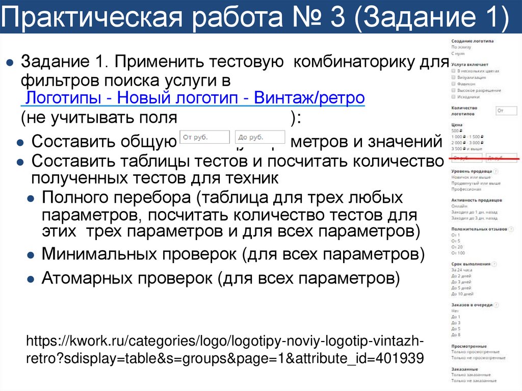 Практическая работа № 3 (Задание 1)● Задание 1. Применить тестовую комбинаторику для