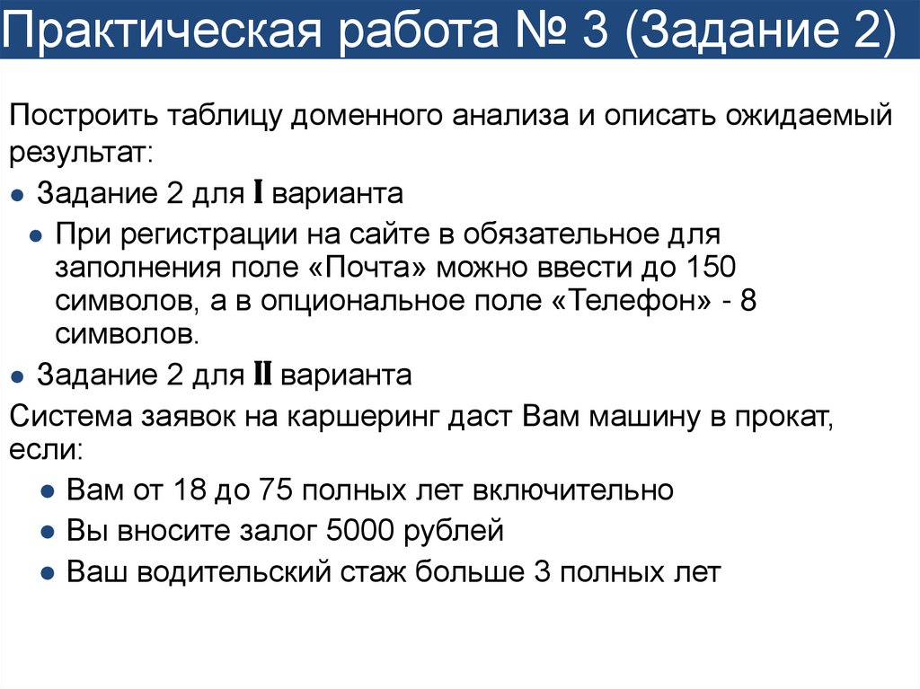 Практическая работа № 3 (Задание 2)Построить таблицу доменного анализа и описать ожидаемый