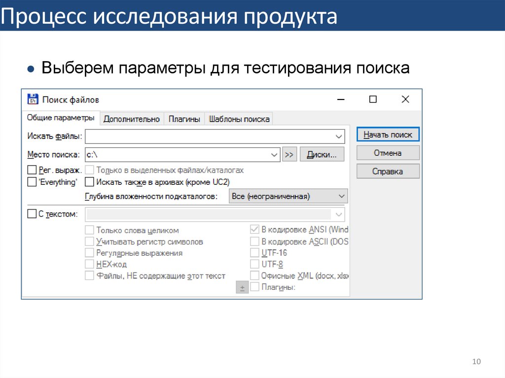 Процесс исследования продукта● Выберем параметры для тестирования поиска
