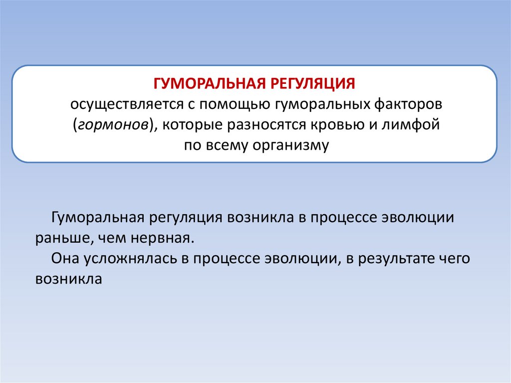 Гуморальная регуляция возникла в процессе эволюции