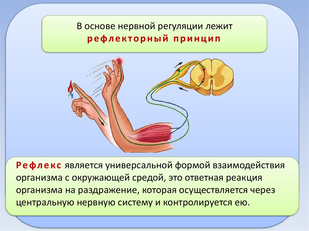 В основе нервной регуляции лежитрефлекторный принцип