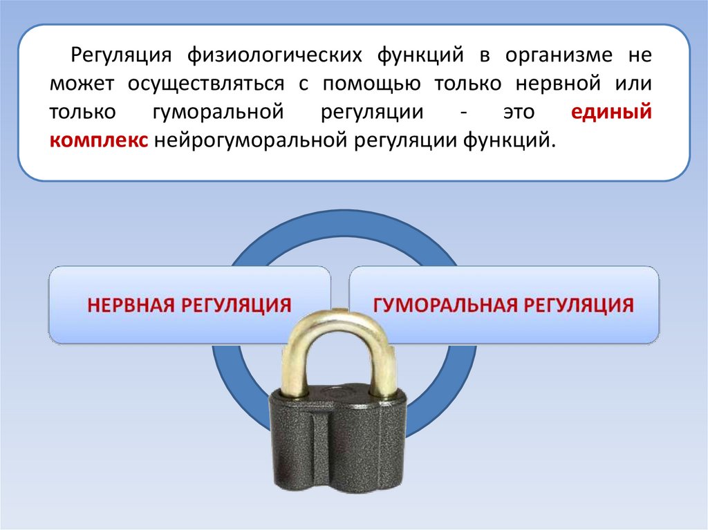Регуляция физиологических функций в организме неможет осуществляться с помощью только нервной или