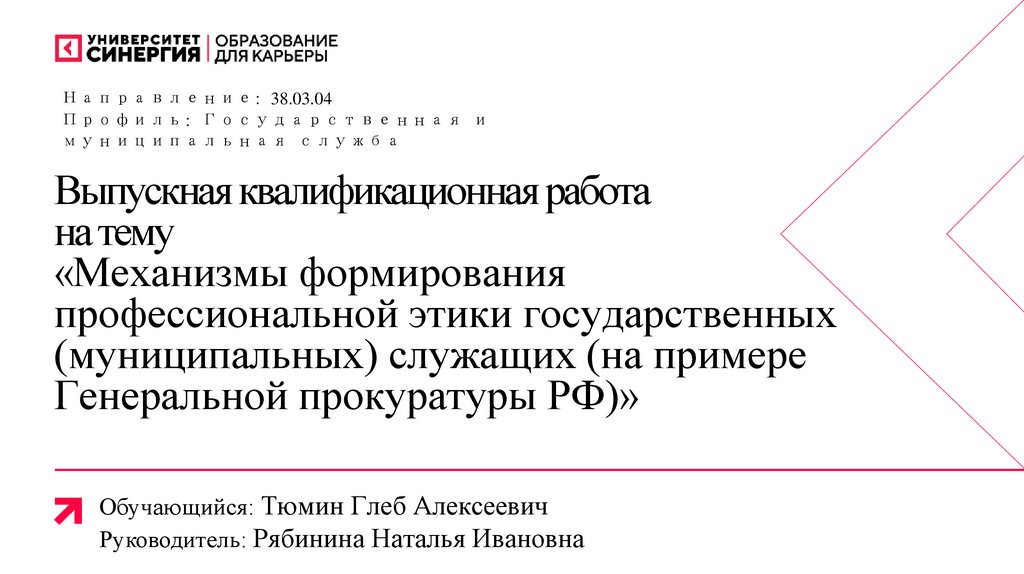 Механизмы формирования профессиональной этики государственных (муниципальных) служащих (на примере Генеральной прокуратуры РФ)