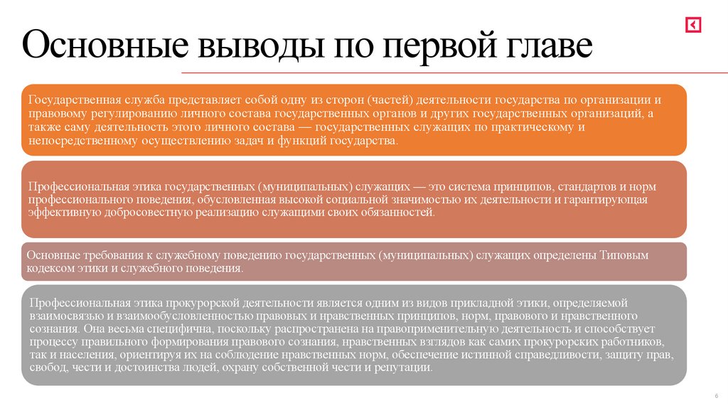 Основные выводы по первой главеГосударственная служба представляет собой одну из сторон (частей) деятельности государства по организации и