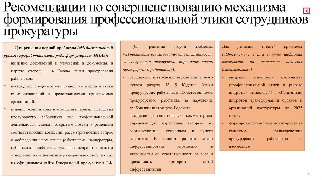 Представить рекомендации по совершенствованию механизма формирования профессиональной этики сотрудников