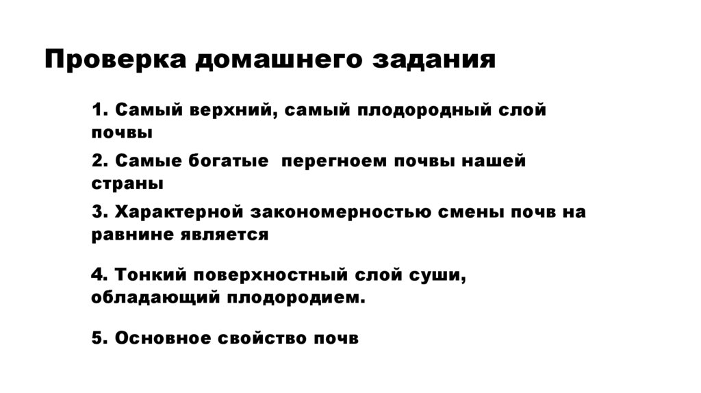 Проверка домашнего задания1. Самый верхний, самый плодородный слой