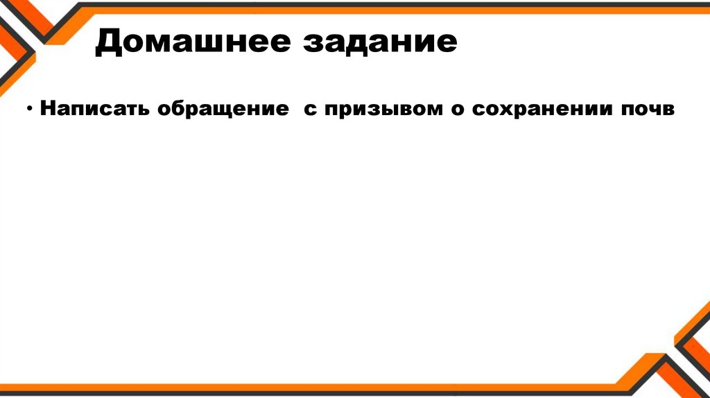 Домашнее задание• Написать обращение с призывом о сохранении почв