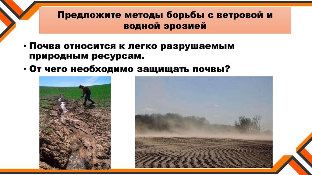 • Обрабатываемые почвы заметно снизили своё плодородие,