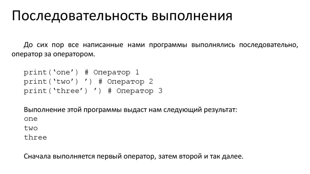 Последовательность выполненияДо сих пор все написанные нами программы выполнялись последовательно,