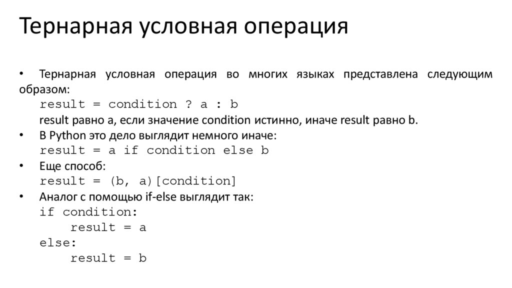 операции, оператор if, ключевое слово else, ключевое слово elif, тернарная условная