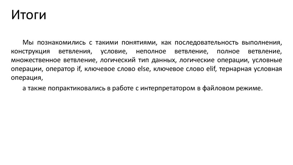 ИтогиМы познакомились с такими понятиями, как последовательность выполнения,