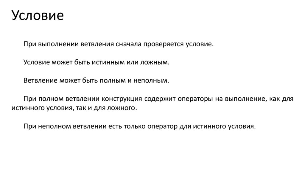 конструкция ветвления, условие, неполное ветвление, полное ветвление,