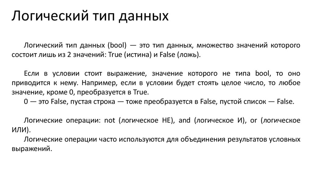 Логический тип данныхЛогический тип данных (bool) — это тип данных, множество значений которого
