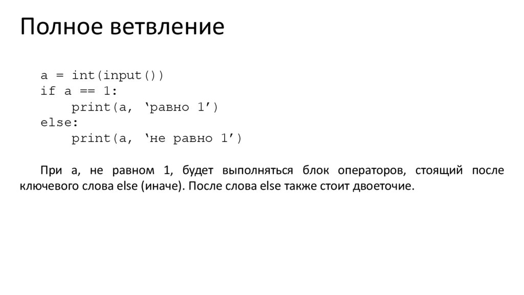 ключевого слова else (иначе). После слова else также стоит двоеточие.
