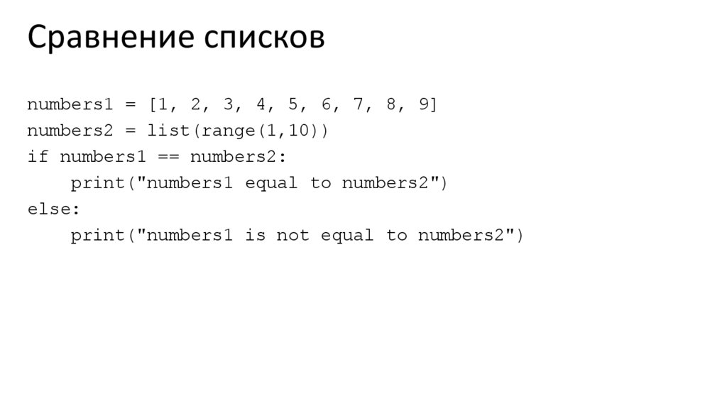 Сравнение списковnumbers1 = [1, 2, 3, 4, 5, 6, 7, 8, 9]