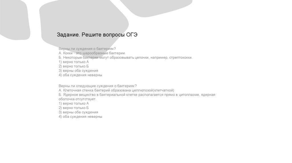 Задание. Решите вопросы ОГЭВерны ли суждения о бактериях?