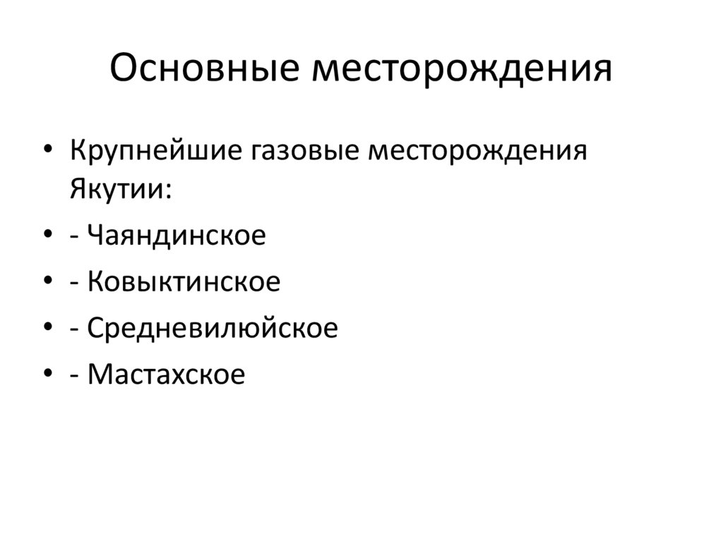 Основные месторождения• Крупнейшие газовые месторождения