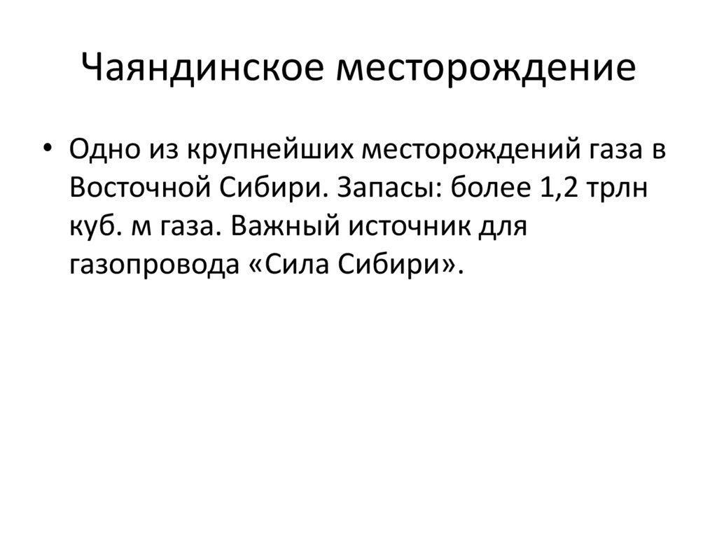 Восточной Сибири. Запасы: более 1,2 трлн