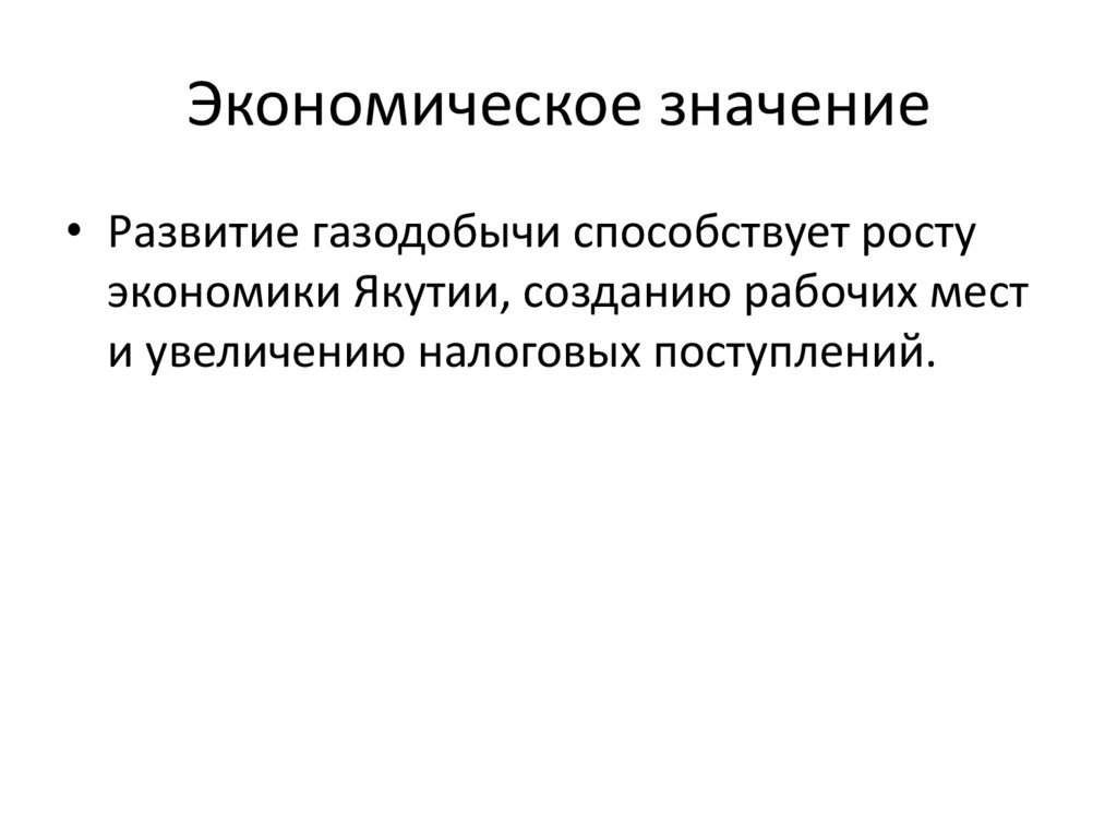 Экономическое значение• Развитие газодобычи способствует росту