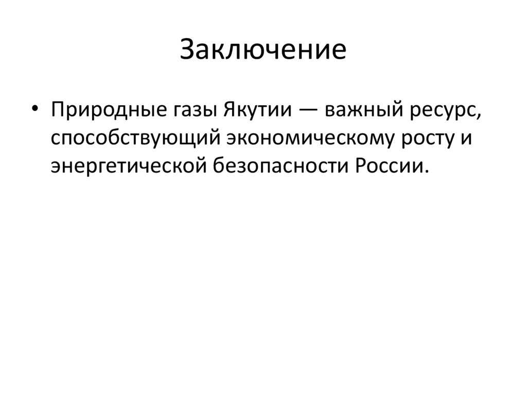 Заключение• Природные газы Якутии — важный ресурс,